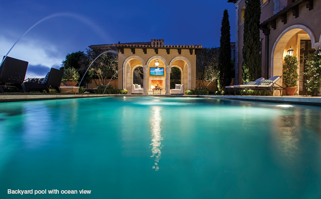 Since there are no other streets higher than this, view blockage was not an issue so the Irvine Company’s Architectural Review Committee approved an increase in the maximum building height from 27’ to 35’, just for that street.  Depending on the design, this change could allow, for example, 14’ ceilings on the ground floor and 11’ ceilings upstairs.  That visual lift provides a welcome openness to these fortunate homes.  This advantage is congruent with the distinctive Northern Italian style, which is predominant on Coral Ridge.  The added height permits taller windows and doors and more formal and typically symmetrical front facades–signature elements of the style.