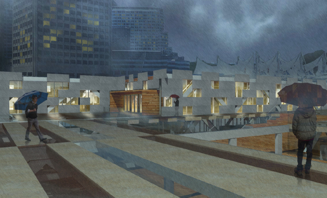 At the University of Arizona College of Architecture, we called our final project Capstone. The students in my studio were tasked with designing a ferry terminal in Vancouver, Canada. Many took that to heart, and spent the year crafting beautiful, boundary-pushing structures and spaces to support people in transit. I took a broader approach, creating a hub for multiple modes of transportation while focusing on the theory of placemaking within the mobile, often temporary environments of transit architecture.