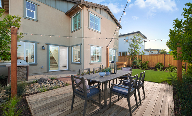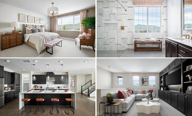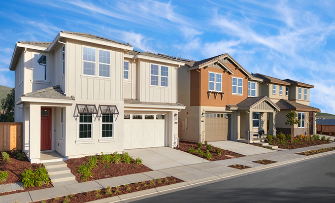 Shimmer, a neighborhood of 60 conventionally plotted single-family detached homes offers three different plans ranging in size from 2,600–3,000 square feet. These 2-story homes feature contemporary, open plans with 2-car garages, standard lofts, and/or dens, and optional outdoor rooms. The options program allows an increase of up to five bedrooms, live-in suites, and enhanced master baths, offering maximum flexibility to a broad range of buyers. The carefully considered design theme continues to the exterior of the homes, enhanced by a mix of stucco and siding with an array of architectural styles and complementary colors,  creating a lively street scene with broad curb appeal.