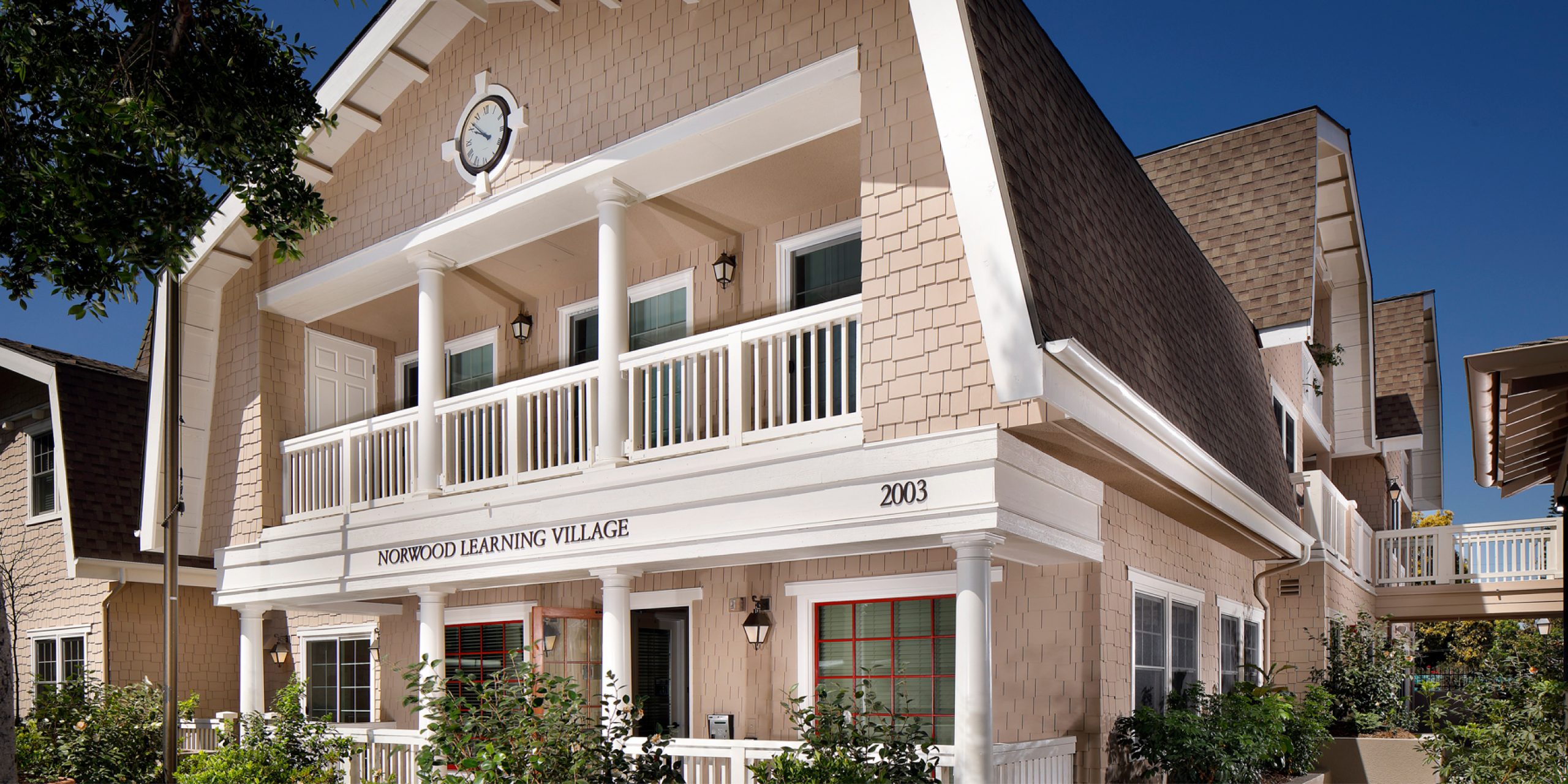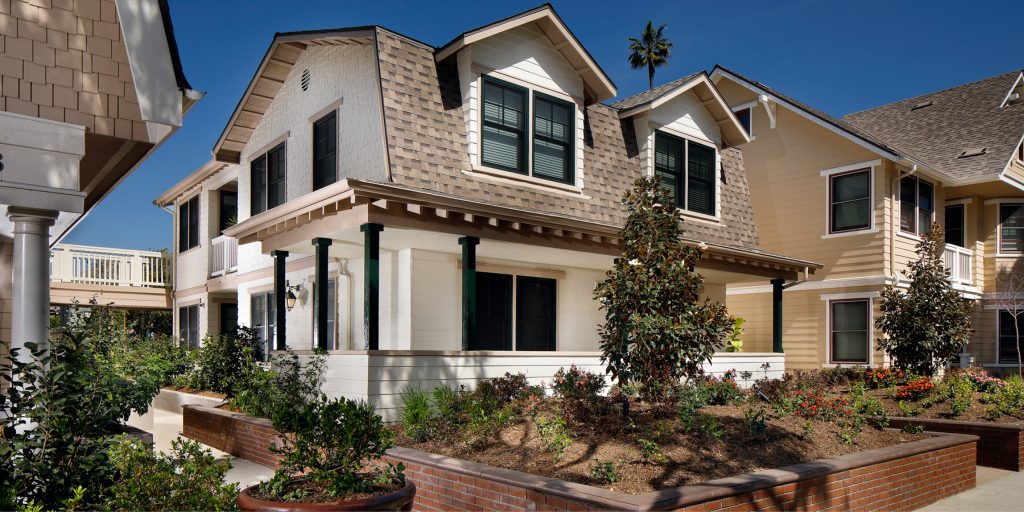 Thomas Safran & Associates teamed with WHA to create the Norwood Learning Village with the Los Angeles Unified School District. The site was a former district parking lot and now includes 29 affordable units in an attractive complex designed within a historic neighborhood. Over 900 applications were received for the units. An underground parking level provides for both residents and staff of the adjacent Norwood Street Elementary School. Significant study of the architectural character of contextual historic properties resulted in a distinctive collection of styles for the six buildings reflective of the neighborhood, meeting the objectives of the University Park Historic Preservation Overlay Zone (HPOZ). It also includes a community center as a quality social space and outreach center.