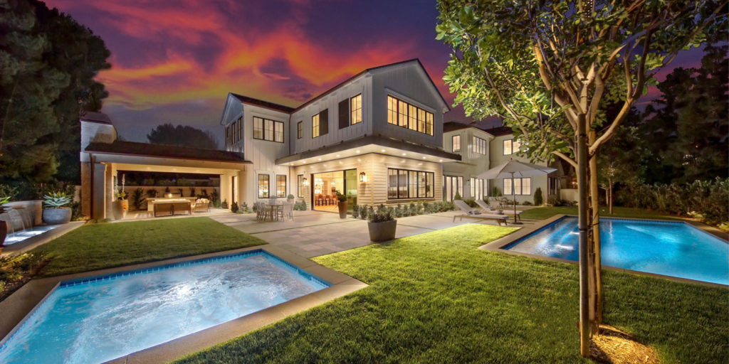 The Deerwood Lane residence in Newport Beach, CA, also offers a generous-sized backyard complete with a pool, spa, and an outdoor pavilion room including a built-in barbeque and fireplace. Adults can enjoy the day in the oversized great room or outdoor pavilion while the kids let their imagination run wild splashing in the pool and running around in the yard. At night, the family can gather around the outdoor fireplace while watching fireworks burst in the sky.