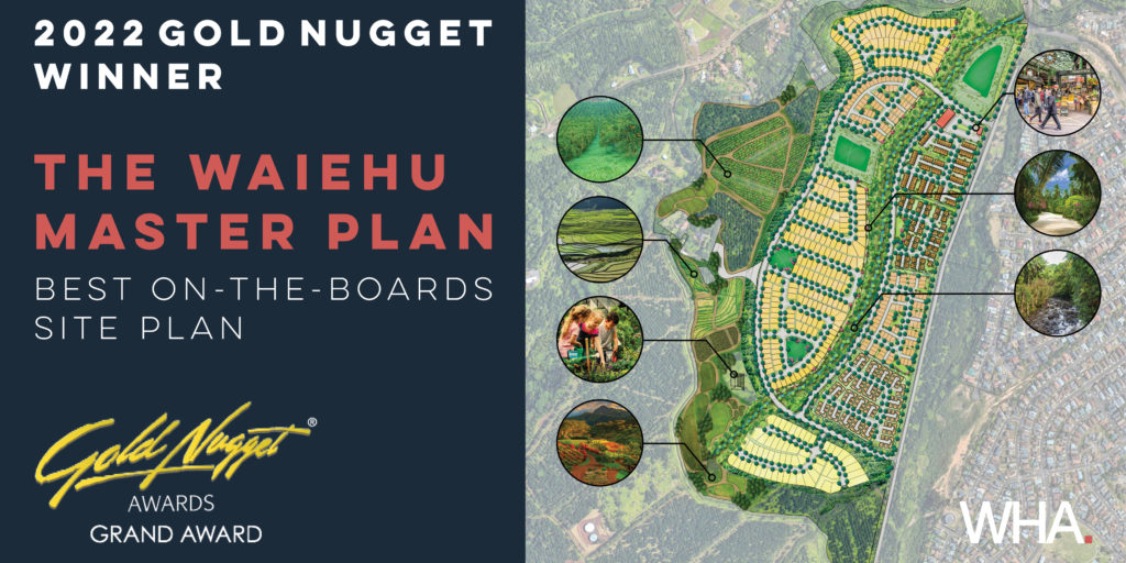 PCBC’s 59th Annual Gold Nugget Awards were held on Wednesday, June 22. After a day full of learning, we headed into the well-anticipated award show with five WHA projects honored as Award of Merit Winners: Petaluma Historic House by Lafferty Communities, Lookout at Bay37 by PulteGroup, Coastline Ventura by JDA West, LLC, the Waiehu Master Plan by Genova Construction & Development, and Sommers Bend by Woodside Homes. We are thrilled to share the Waiehu Master Plan by Genova Construction & Development was named the Best On-the-Boards Site Plan! Located in Maui, HI, this site will provide multiple tiers of affordable housing with 752-units as part of the 201H approval process. Uniquely situated between town, country, mountain, and sea, take a moment to learn about the site’s unique attributes and future amenities by visiting its project page.