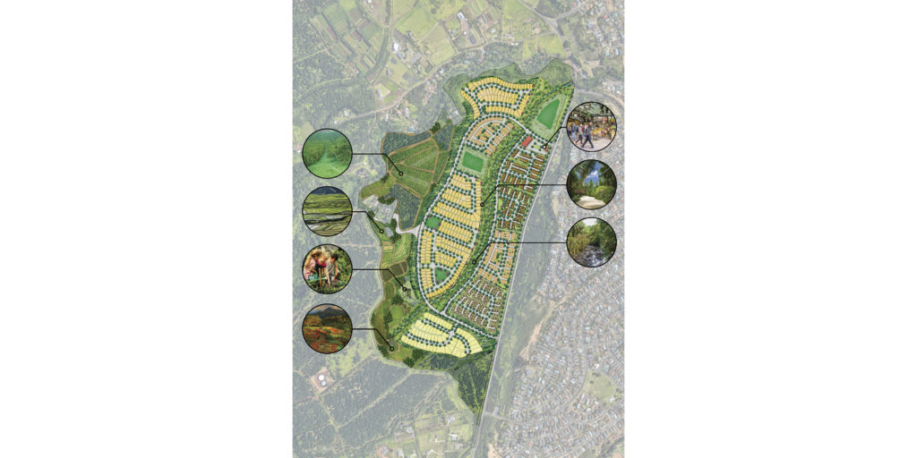 Thank you! Waiehu was brought to us by a friend of a friend within our industry. This 250-acre investment originally was intended to grow white pineapples – the most flavorful of pineapples and considered to be a lucrative business. Instead, the owner decided to try to get the land entitled first. Hawaii is very near and dear to my heart, making sure this project was enhancing the built environment without sacrificing the intrinsic qualities of Maui was crucial. During the entitlement process, our main objective was to design a sustainable community that would improve the area and make it function effectively. Good design creates value. We paid attention to every detail ensuring the project could be cost sensitive, not only to deliver to the market but to the people living in the community. For example, we wanted the basins to be utilized as park space, ensuring the central drainage system could also function as a trail. While our original approach was not fully focused on affordable housing, new directives from the city, the pandemic, and other factors ultimately shifted us in that direction. Working closely with our incredible client, Genova, and the local engineer was my favorite aspect of this project, as well as being able to create affordable housing in Maui.