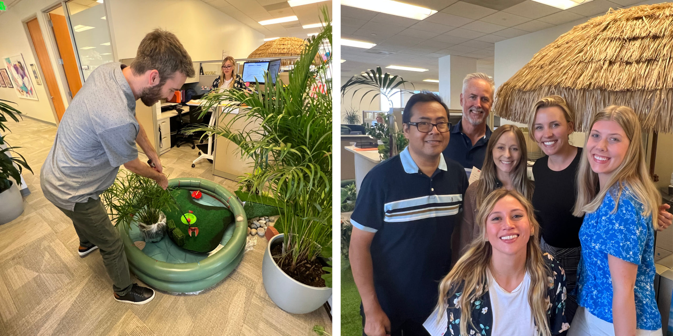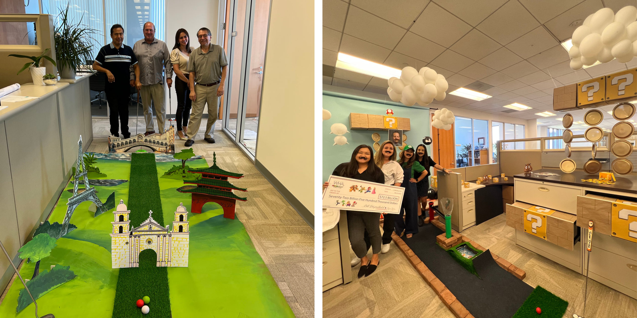Our four offices throughout the state have a tradition of celebrating the successes of each quarter with some team bonding. Typically, this tradition takes the form of a delicious lunch. This quarter, our Orange County team decided to take it one step further and turn the office into a miniature golf course.