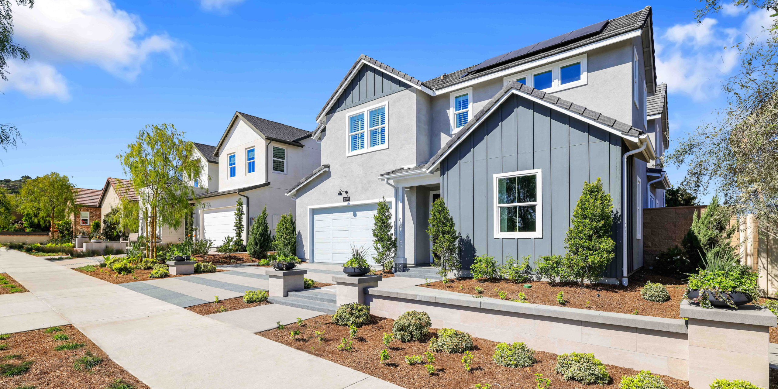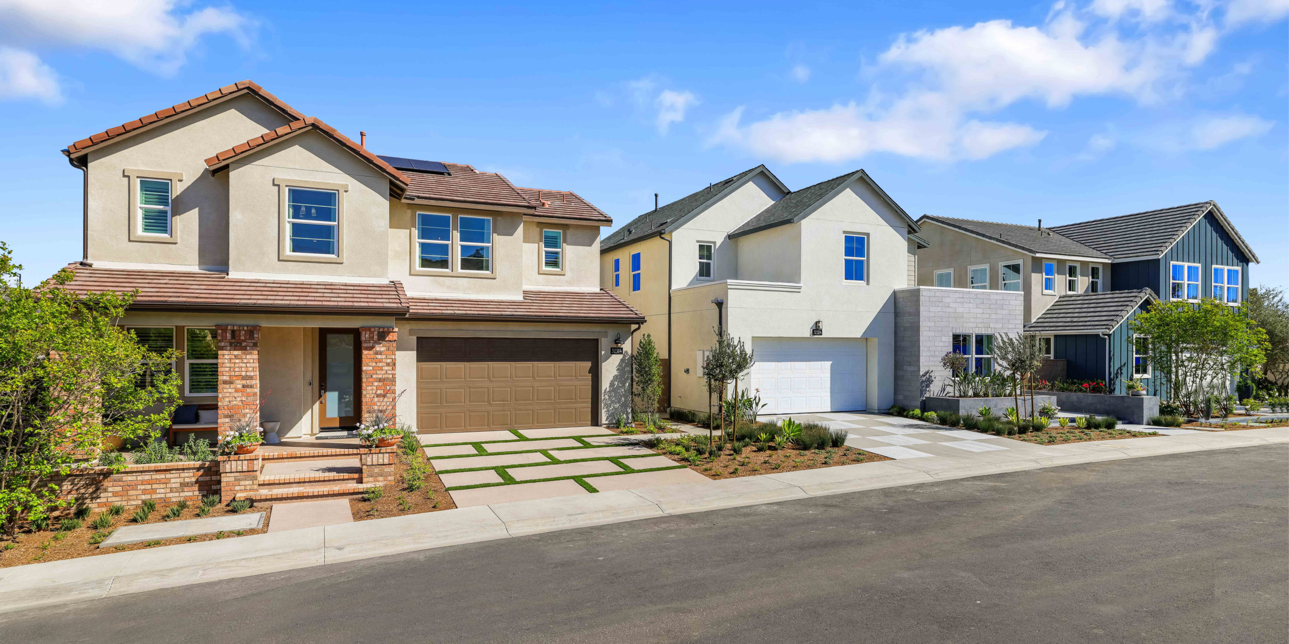 A new masterplan community, The Farm features two WHA designed single family home products: Andalusia and Caspian. Both collections feature three floorplans with architectural styles of Farmhouse, San Juan Farmhouse, and Contemporary Farmhouse as an ode to its location. The residences boast modern color and materials schemes with brighter stucco, brick and stone accents providing a modern aesthetic to this neighborhood of farmhouse homes.