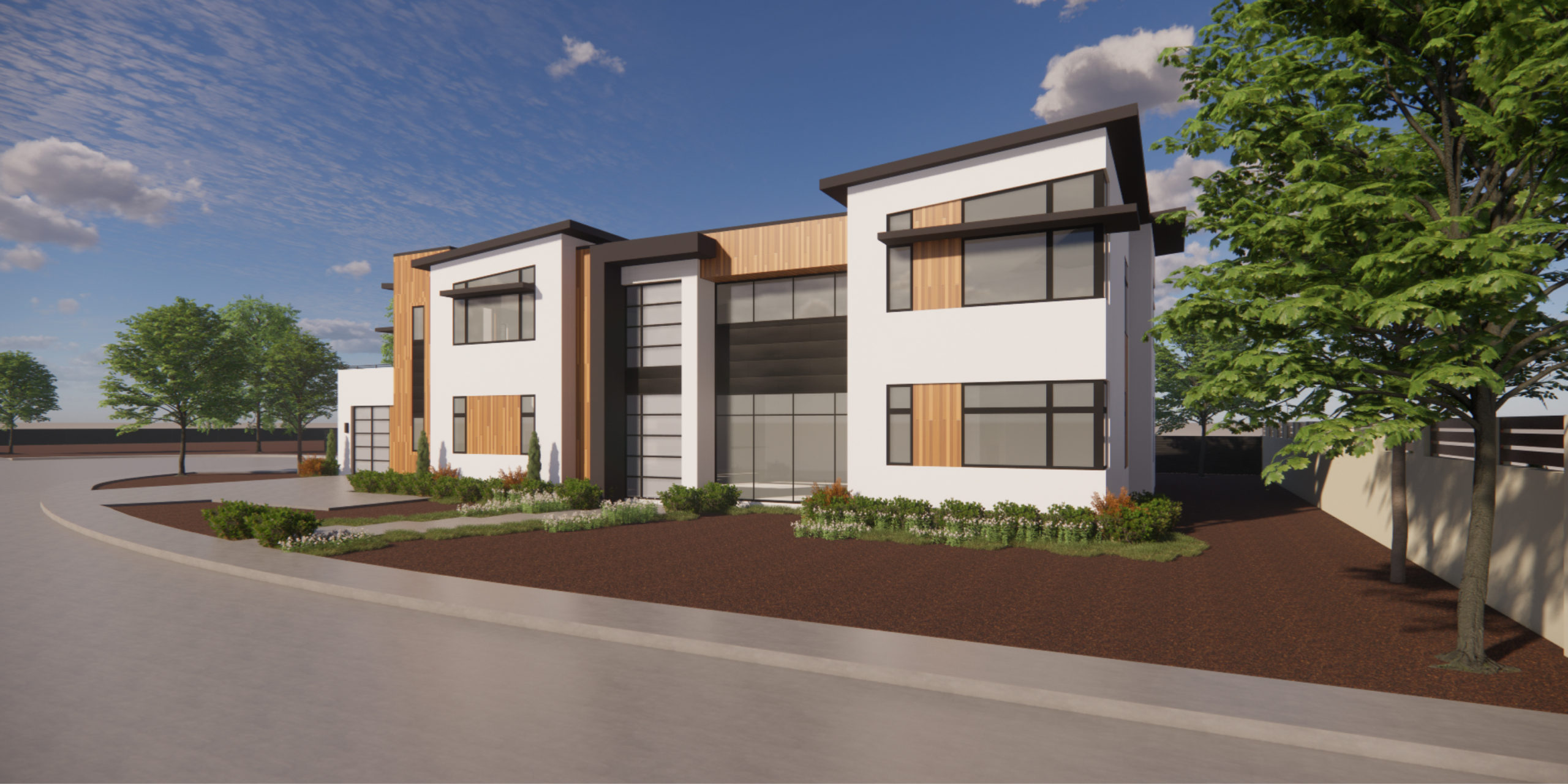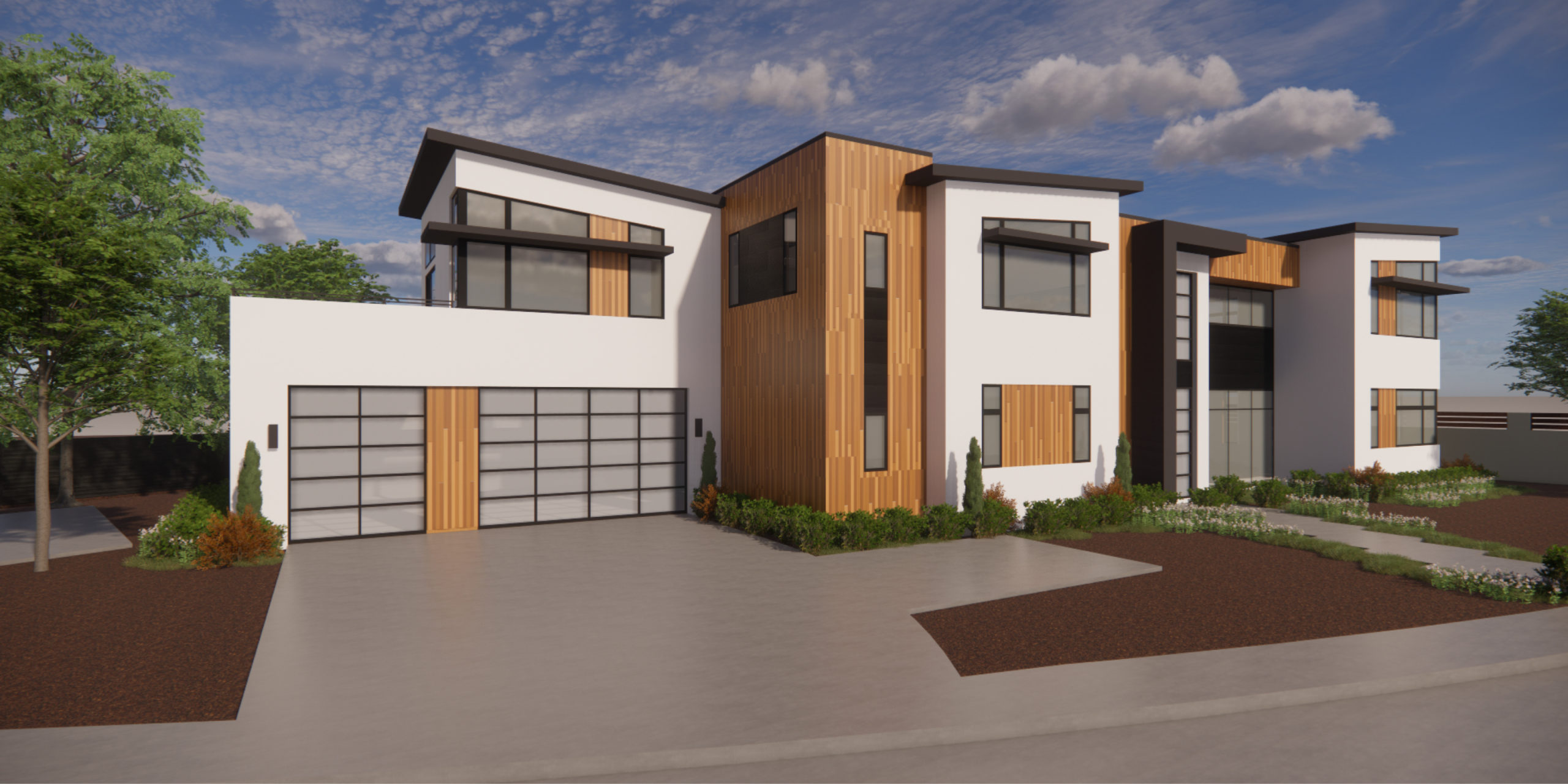 The Modern Contemporary Lot 6 includes 5 bedrooms, 5.75 bathrooms, an attached ADU and a 3-car garage within 4,981 square feet. Both residences received Design Review approval in April.