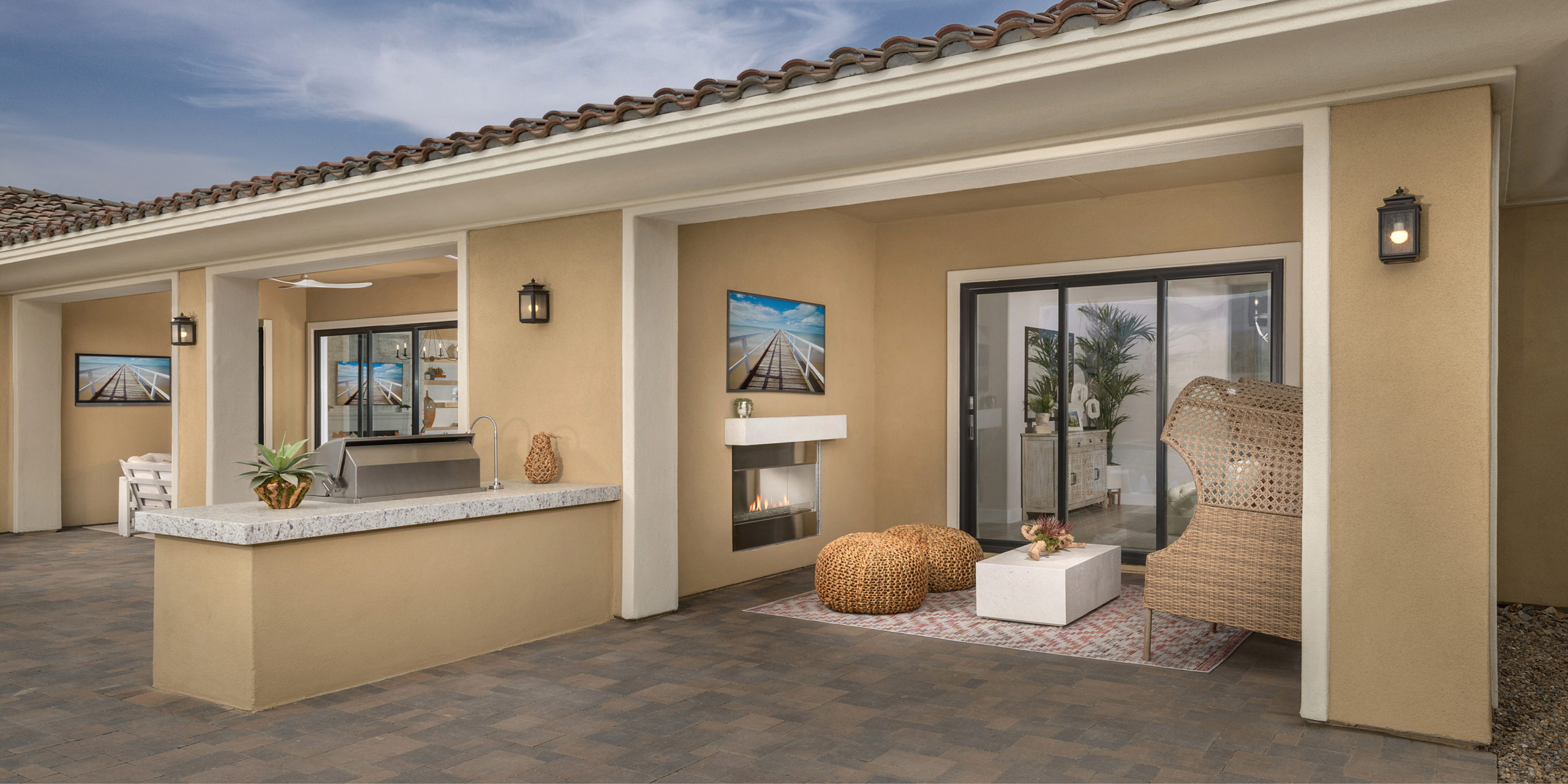 Within the walls of each home are luxurious single-level designs with seamlessly integrated great rooms, kitchens, and dining rooms. Indoor-outdoor living is truly emphasized with sliding glass doors in the great room opening to the covered patio, an entertainer’s dream.