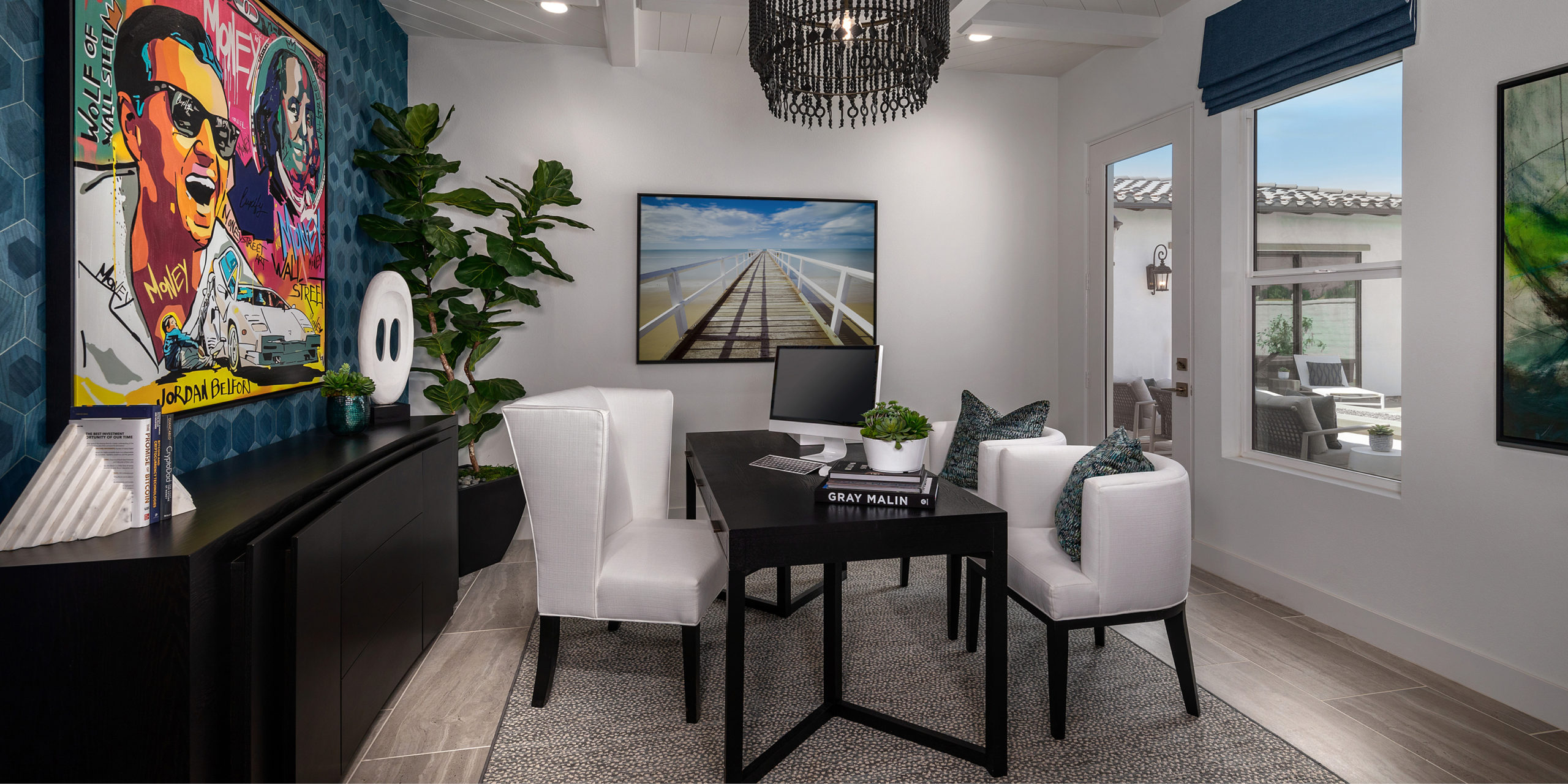 Flex spaces placed adjacent to the entry and living area can be utilized as a home office, studio, game room, or a formal dining room.