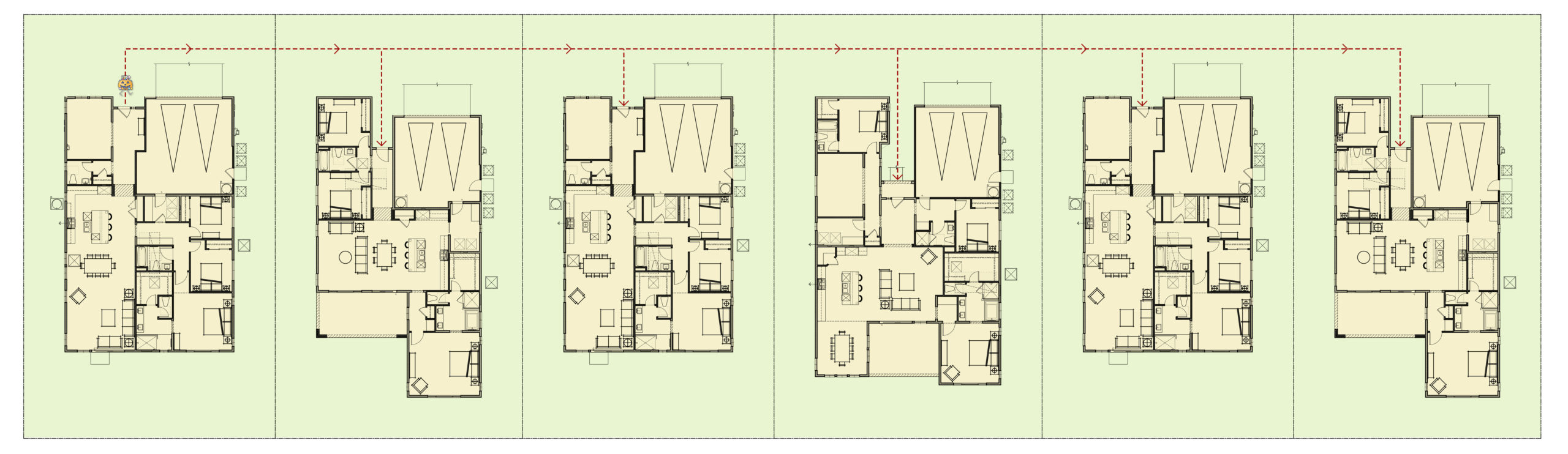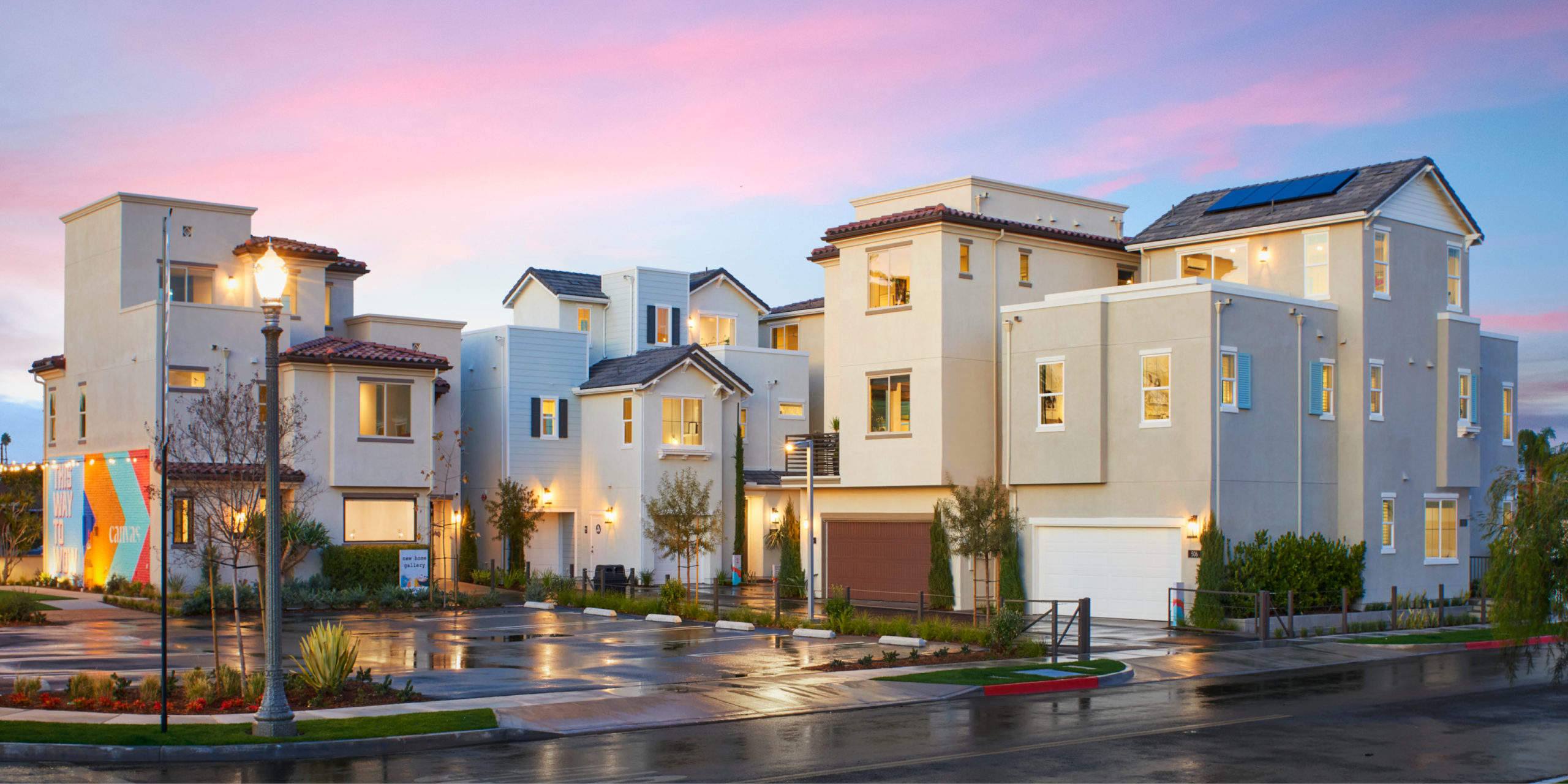 Lastly, let’s compare cluster home layouts. Cluster homes are typically bundles of single-family homes plotted in groups resulting in 2 or more homes sharing a paved travel space. This layout benefits a trick-or-treater in the sense that you’re getting 2-4+ houses for 1 stop! Double or even quadruple the candy revenue. Some great examples of WHA cluster homes include Cerise at Canvas, Amber at Solis Park, and Icon at Levity.