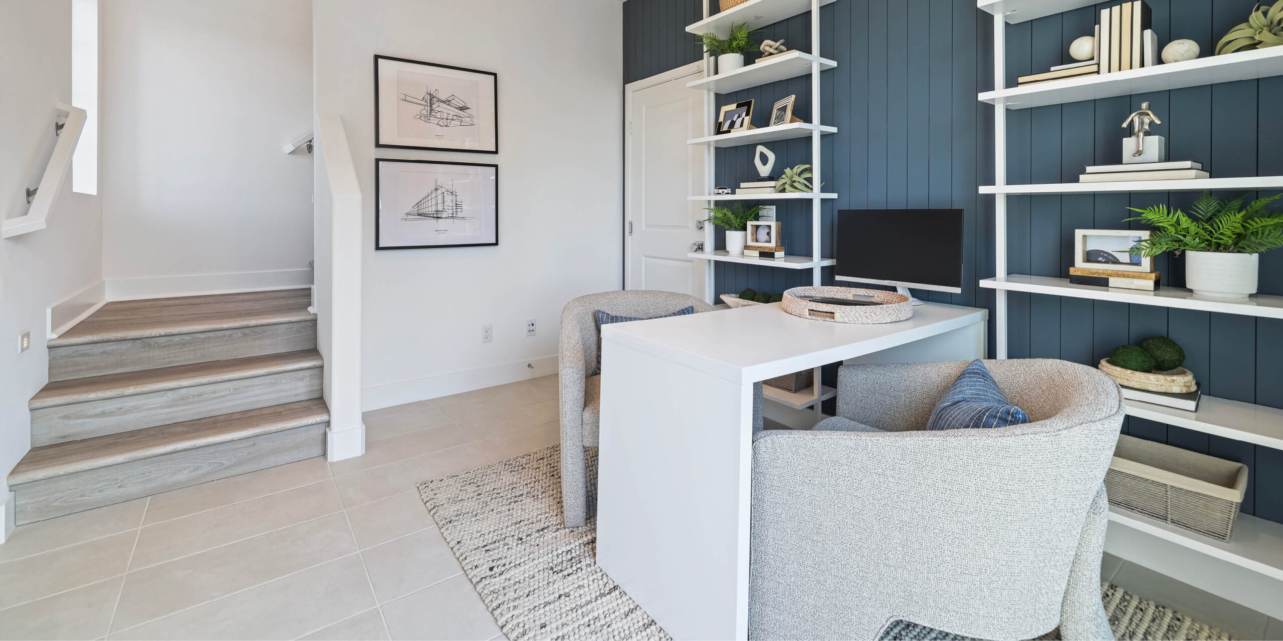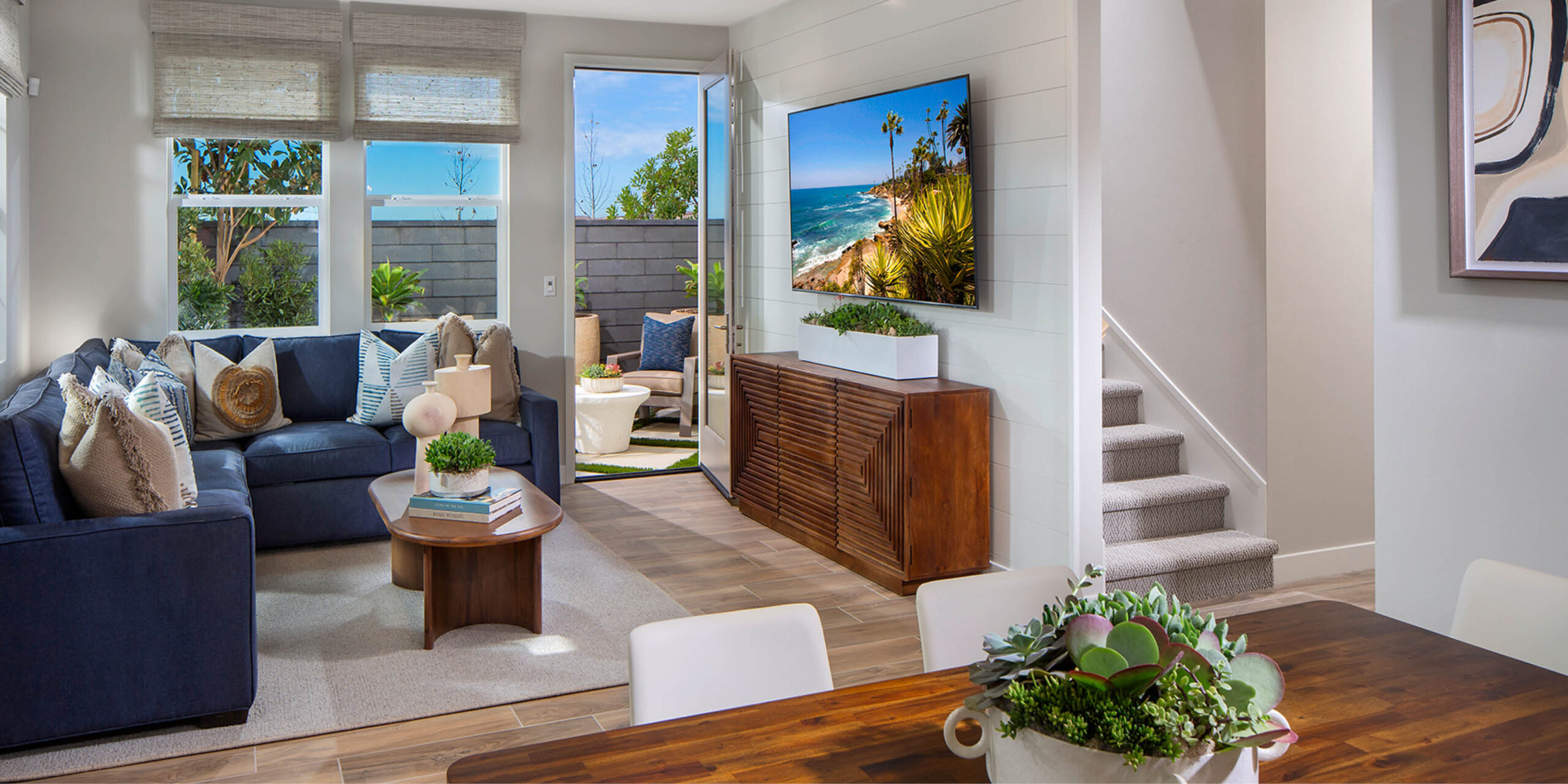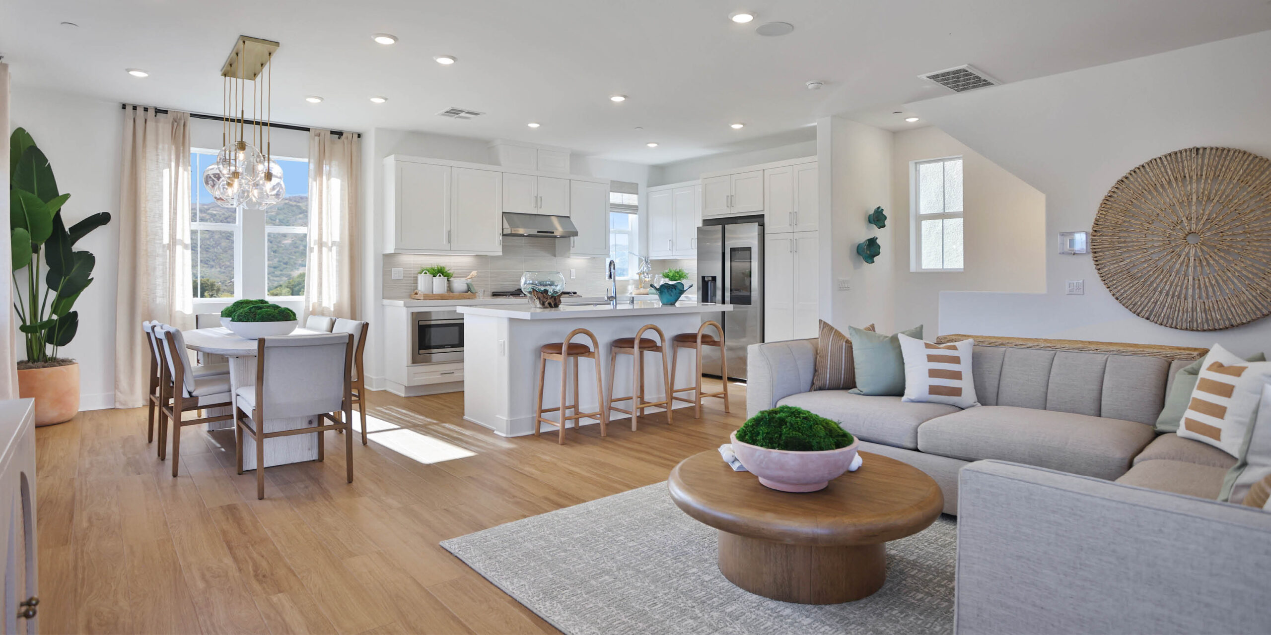 A 3-story single-family design that provides the perfect balance of practicality and flexibility with a multifunctional first floor, a deck off the great room, and a restful primary suite. Tri Pointe Homes also partnered with interior designer Bobby Berk to offer curated home designs, enabling buyers to visualize themselves in thoughtfully created spaces.