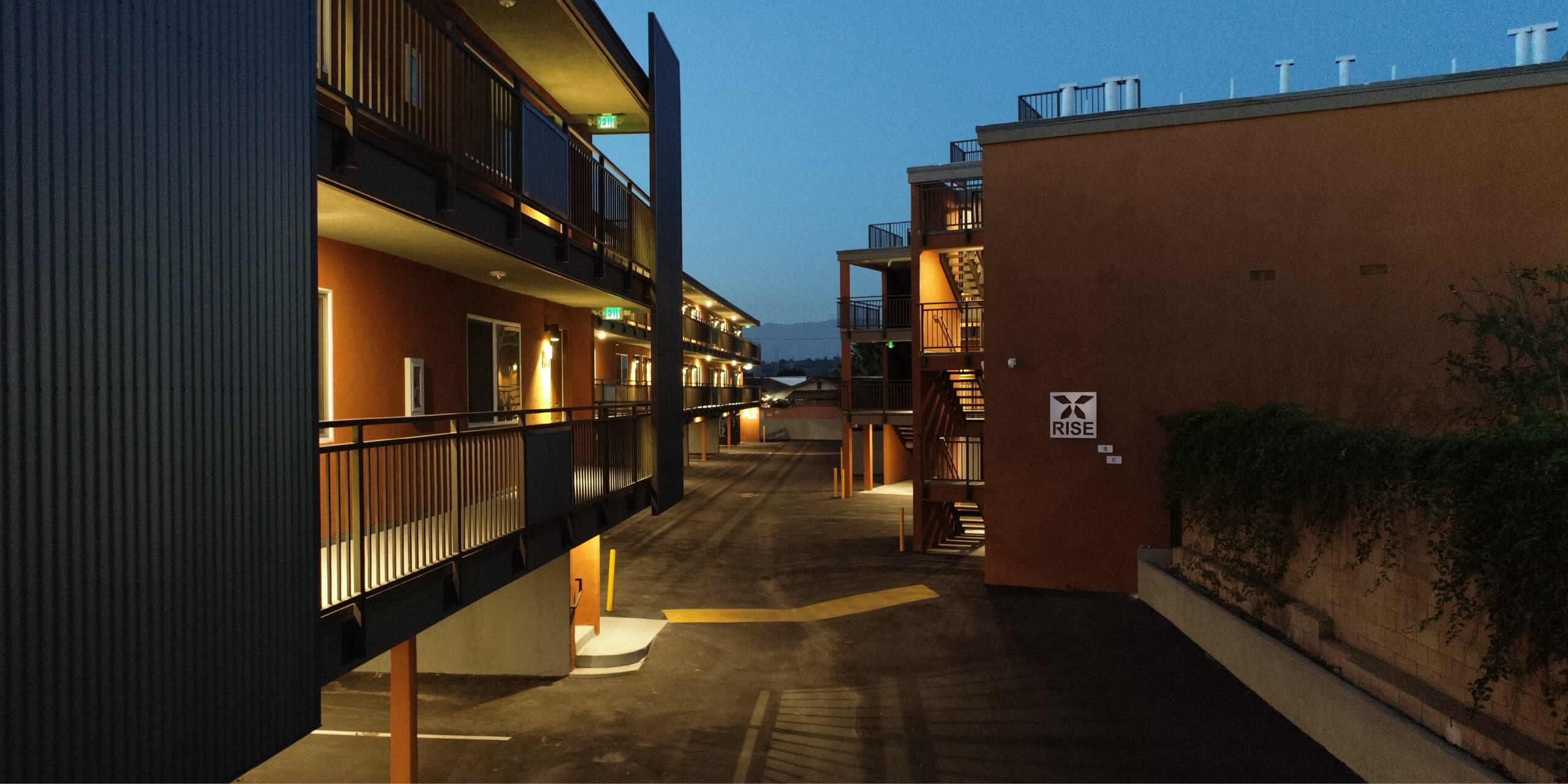 In our design, we were inspired by the architectural spirit of the original 1964 motel. By replacing colored lattice panels with durable corrugated metals, we created a facade that acknowledges the mid-century origins while fitting seamlessly into today’s architectural landscape. This approach ensures that Rise not only serves as functional housing but also preserves and celebrates the legacy of the site.